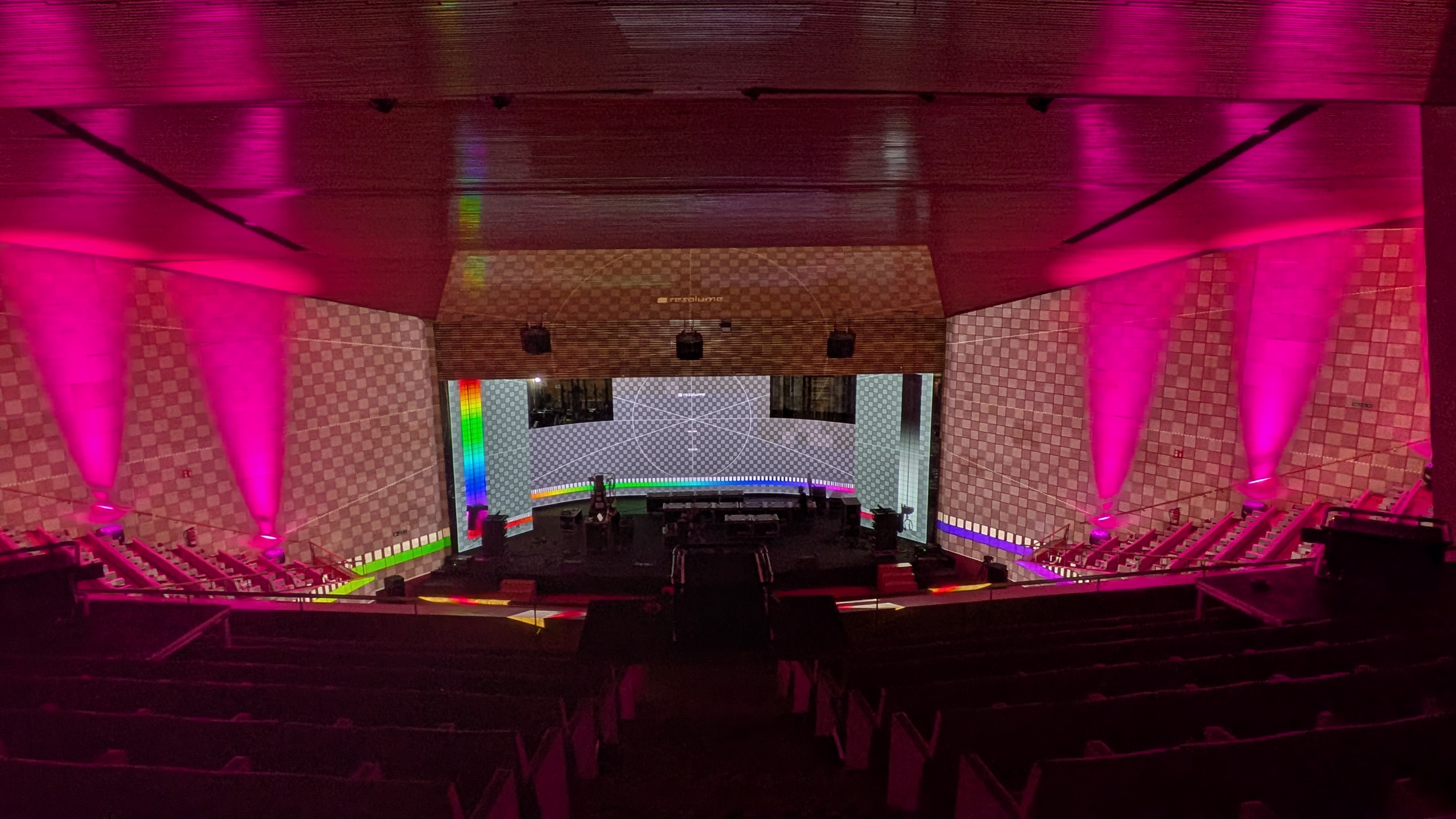 Integración completa de platós de grabación virtual. Acondicionamiento acústico, iluminación robótica específica e infraestructura para producción en directo y diferido.