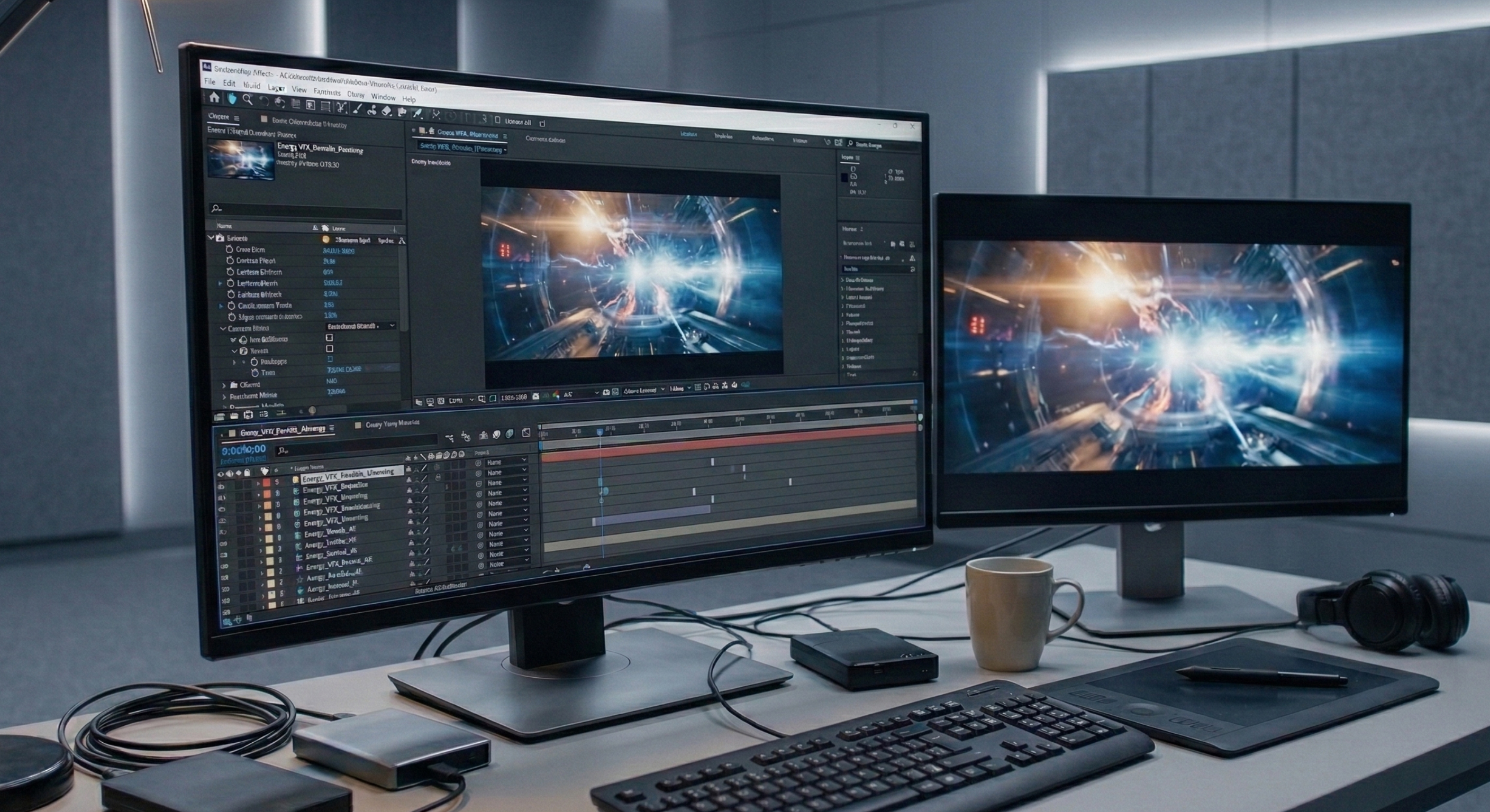Desarrollo de gráficos, vídeos corporativos y recursos visuales adaptados a grandes formatos. Edición y postproducción digital a medida para potenciar el impacto de sus eventos.