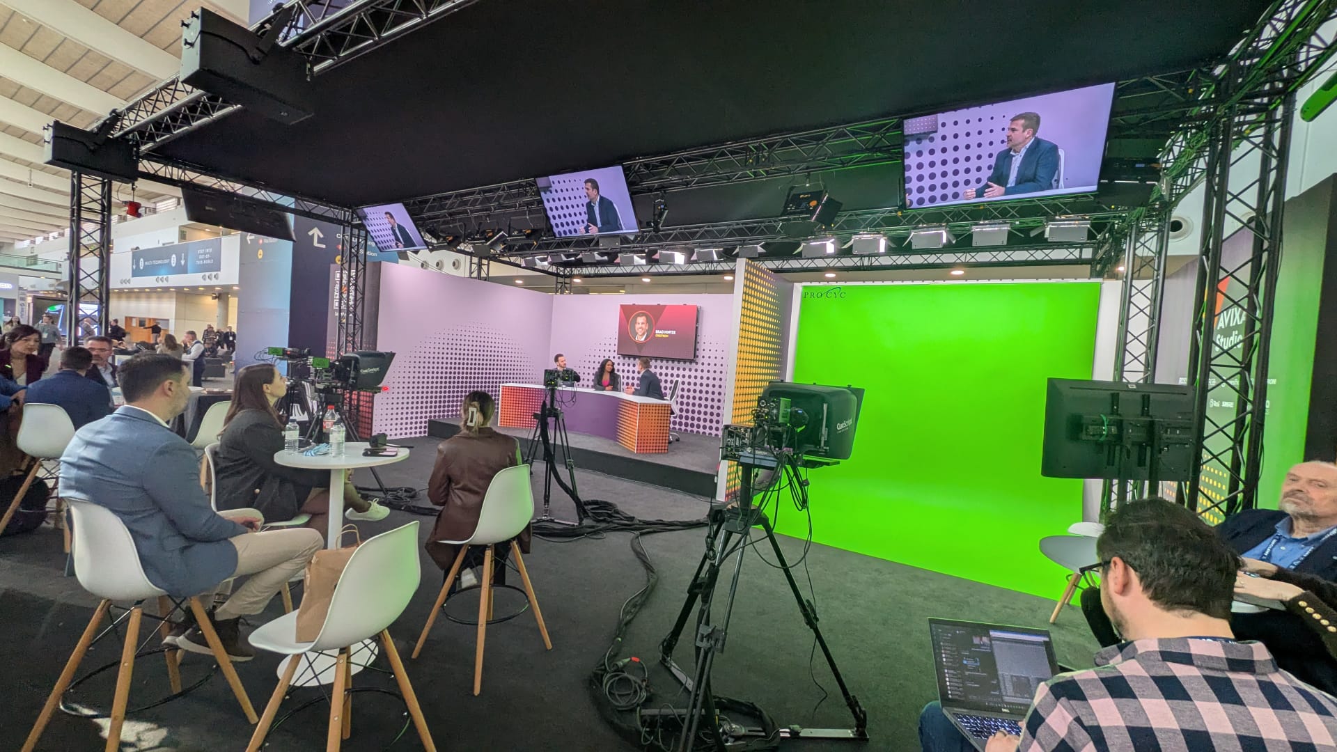 Estudio de grabación y TV para eventos en directo y streaming para ISE 2026.Desde hace mas de 10 años trabajamos de manera activa con Fluge av en eventos de primer como Mobile World Congress,Ise o festivales como Sonar y Primavera Sound
